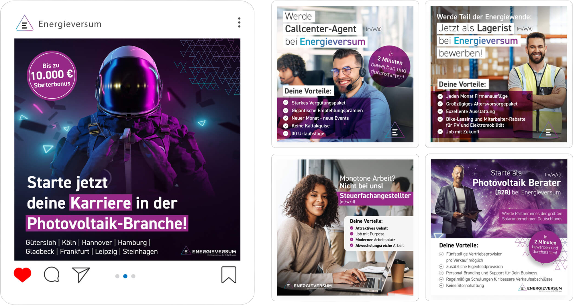 In den letzten Jahren haben wir für Energieversum ein mittleres siebenstelliges Werbebudget verwaltet und über Performance Marketing Kampagnen mehr als 50.000 qualifizierte Photovoltaik Leads generiert.
