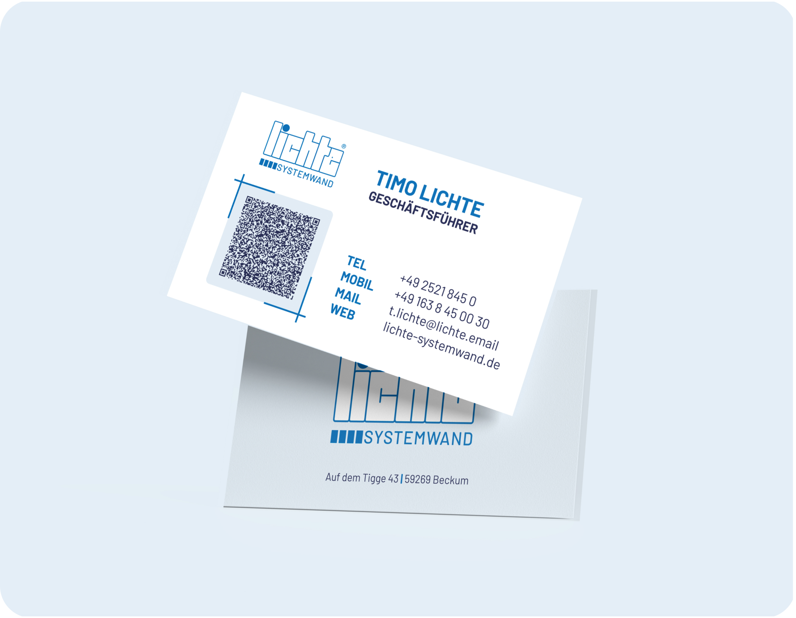 Für Lichte Systemwand haben wir eine einheitliche Geschäftsausstattung entwickelt, die den professionellen Auftritt des Unternehmens unterstreicht. Von der Gestaltung der Visitenkarten über Briefpapier bis hin zum Notizblock zieht sich ein klares Designkonzept durch alle Elemente. So entsteht ein durchgängiger Markenauftritt, der Wiedererkennung schafft und die Qualität des Unternehmens nach außen trägt.