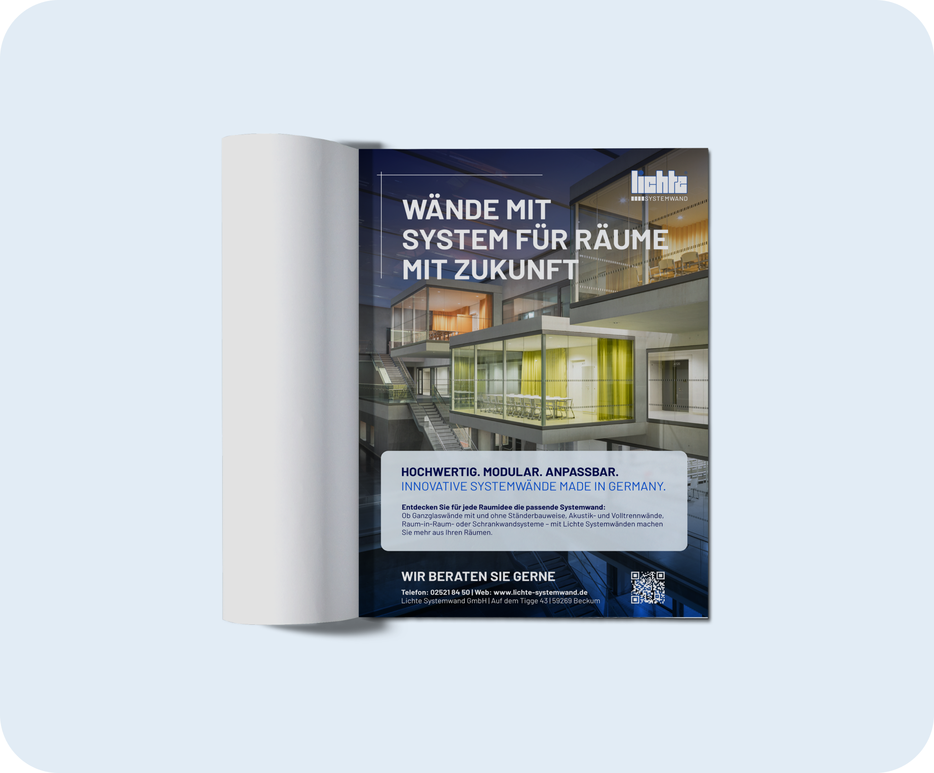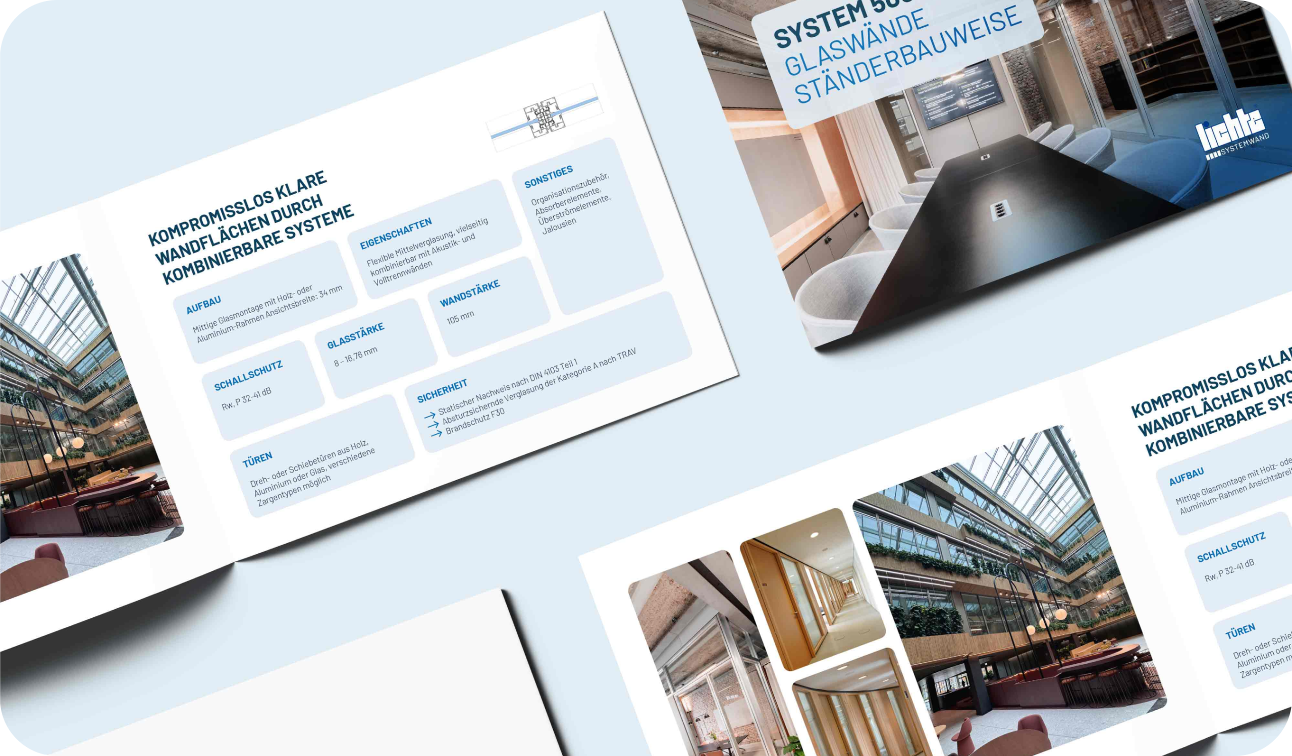 Für unseren Kunden haben wir ein ganzheitliches Corporate Design entwickelt. Neben einer behutsamen Logo-Überarbeitung sorgt die neu gestaltete Website dafür, die Vielfalt und Funktionalität der Systemwände klar und strukturiert zu präsentieren. Ergänzend dazu haben wir ein hochwertiges Lookbook, professionelle Visitenkarten und ansprechende Flyer konzipiert, die den neuen Markenauftritt stimmig abrunden.